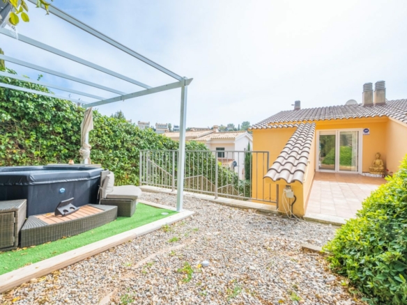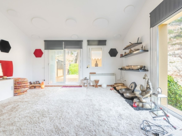 Maravillosa casa con vistas al mar y a la magnífica marina de Aiguadolç, a 5 minutos de la playa y del centro de Sitges. Además de un magnífico jardín comunitario y piscina para solo 6 vecinos, con increíbles vistas al mar y a las montañas y una enorme privacidad, lo que convierte a esta casa en un oasis de tranquilidad y belleza. La casa se divide en tres plantas y con la particularidad de que todas las habitaciones son exteriores, con salidas a diversas terrazas, patios, jardines y zonas chill out.