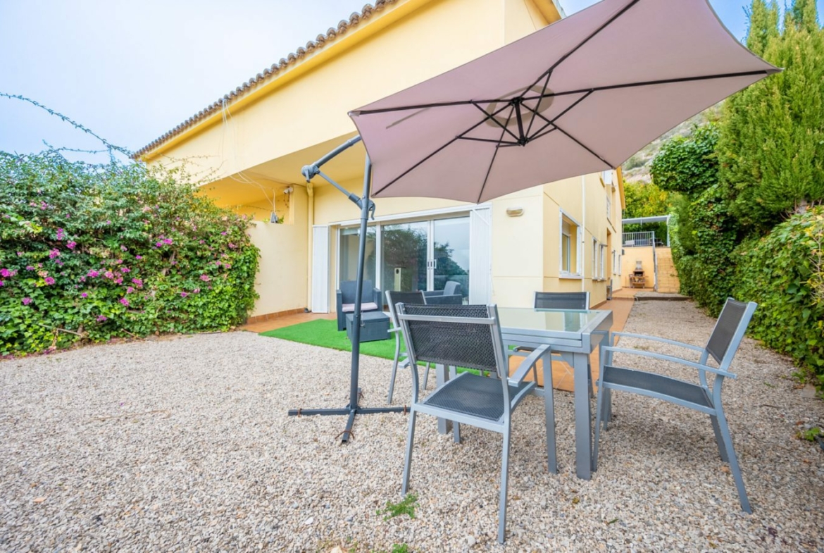 En la planta principal encontramos un amplio salón, con enormes ventanales y acceso a una hermosa terraza que da acceso a una hermosa y muy privada área de jardín con excelentes vistas al mar, puerto y montañas. En esta misma planta hay una cocina independiente totalmente equipada con electrodomésticos modernos, placa de inducción, horno moderno, lavavajillas, nevera.