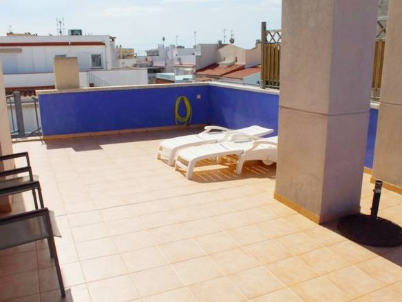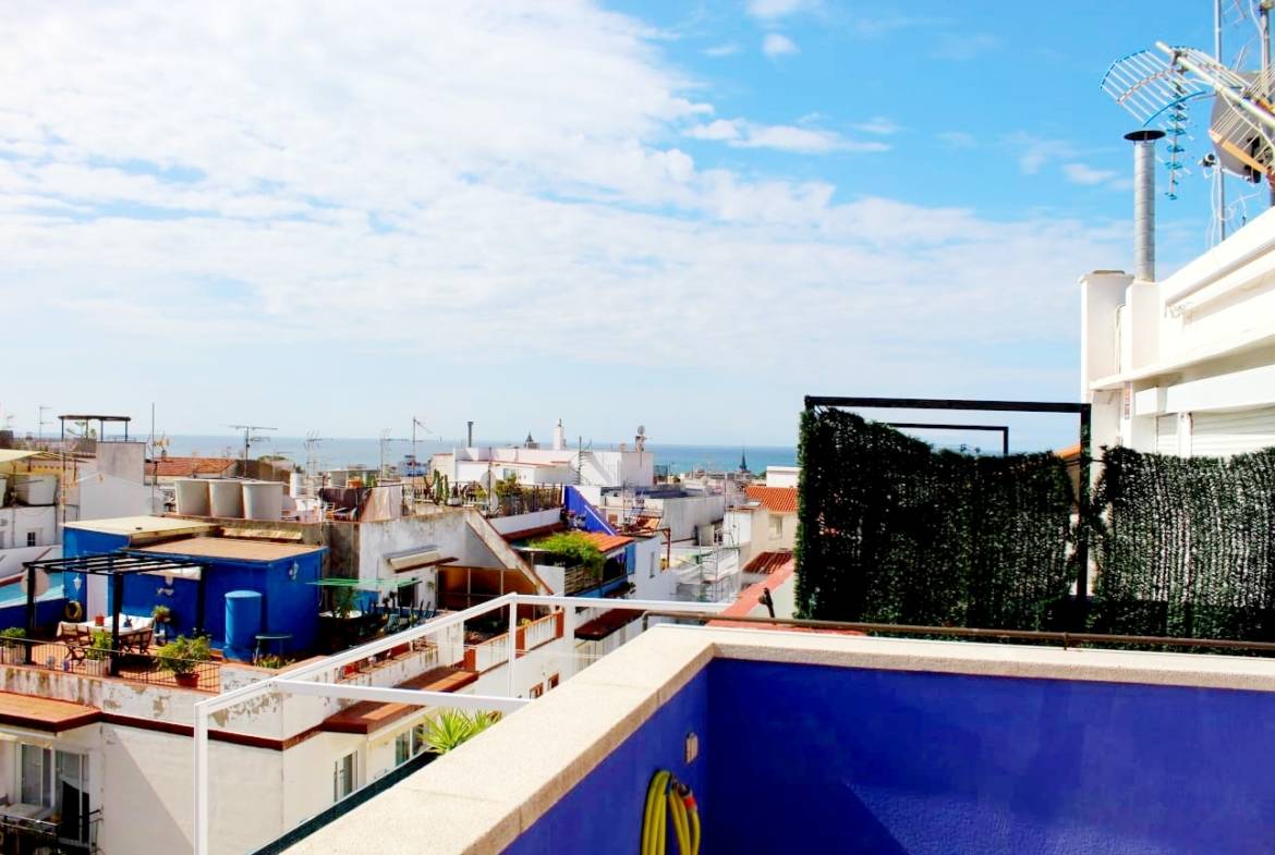 Ático en alquiler mensual, Este ático ofrece una terraza y solárium con vistas al mar. Está ubicado en una calle tranquila a pocos pasos del centro de la ciudad. Aunque pequeño, el apartamento es acogedor y los espacios exteriores lo hacen sentir más espacioso.