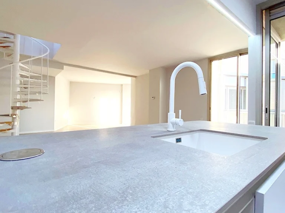 Ático recién renovado con acabados de calidad y diseño: Baños a estrenar en microcemento de color plata, un material impermeable y sin juntas, muy práctico y moderno. Cocina de alta gama a estrenar con muebles en blanco ártico mate con propiedades antirrayas y de reparación térmica, antihuellas y suave al tacto, acabado gola y iluminación de diseño LED. Nueva pavimentación en todo el apartamento que aporta calidez y confort a todo el hogar. Marcos y puertas lacadas en blanco y paredes con olor a nuevo. Carpintería de aluminio y doble acristalamiento (tipo Climalit), calefacción controlada por radiadores y aire acondicionado ajustable por zonas. Listo para mudarse con todo tipo de lujos.